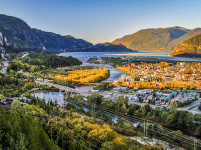 Typical Duration: 4 DaysSquamish is positioned at the north end of Howe Sound on the Sea-to-Sky Highway. It offers a geographic overview of British Columbia's diverse terrain, from granite peaks to temperate rainforests.